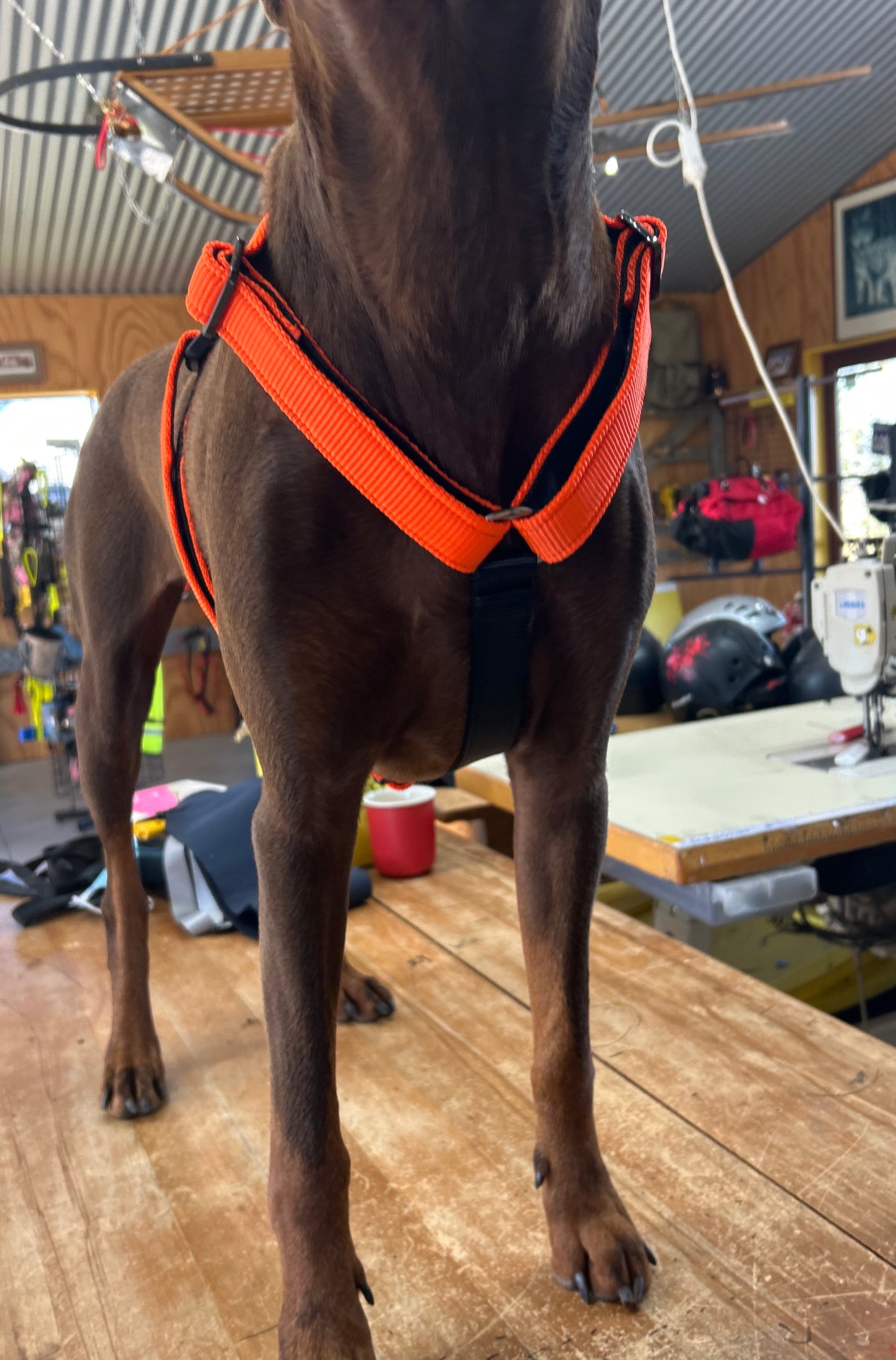 A well-fitted harness changes everything. Ours is fully adjustable and shaped to sit: